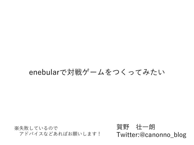 enebularで対戦ゲームをつくってみたい 賀野 壮一朗 Twitter:@canonno_blog ※失敗しているので アドバイスなどあればお願いします!
