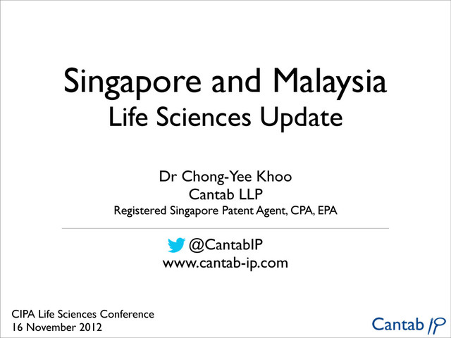 Update on life sciences patent law and practice in Singapore and Malaysia, given at the Life Sciences Conference of the Chartered Institute of Patent Attorneys, 16 November 2012 (Luton Hoo, UK).