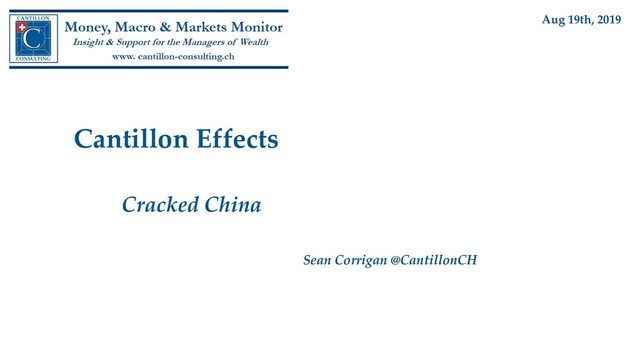 In line with the trends - both real and monetary - whose development we have long been documenting, China's economic situation continues its sharp deterioration, much of it principally domestic in origin, even if being aggravated by President Trump's 'Trade Wars'.