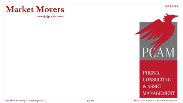 July 2018 Please see the disclaimer at the end of this document S&P GSCI TR The ongoing liquidity squeeze in China has led to what seems to have been a major liquidation of base metal longs. Added to the ongoing threat to US exports of agricultural products and uncertainty over Saudi’s stance re its oil sales, the year-long bullish channel has been broken. However, the last week’s modest rally still offers faint hope of a continuation to our earlier target of 3075/4000,one above 2750, and, beyond that, a full unwind of the last downleg of the 2014/16 bear market to 4000. No further weakness can be tolerated, however. Courtesy of Investing.com