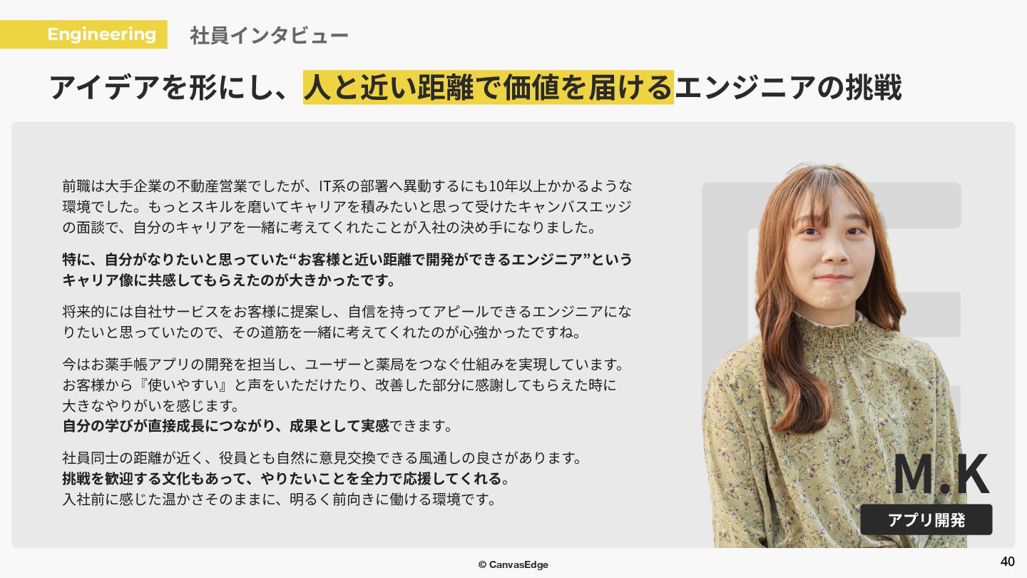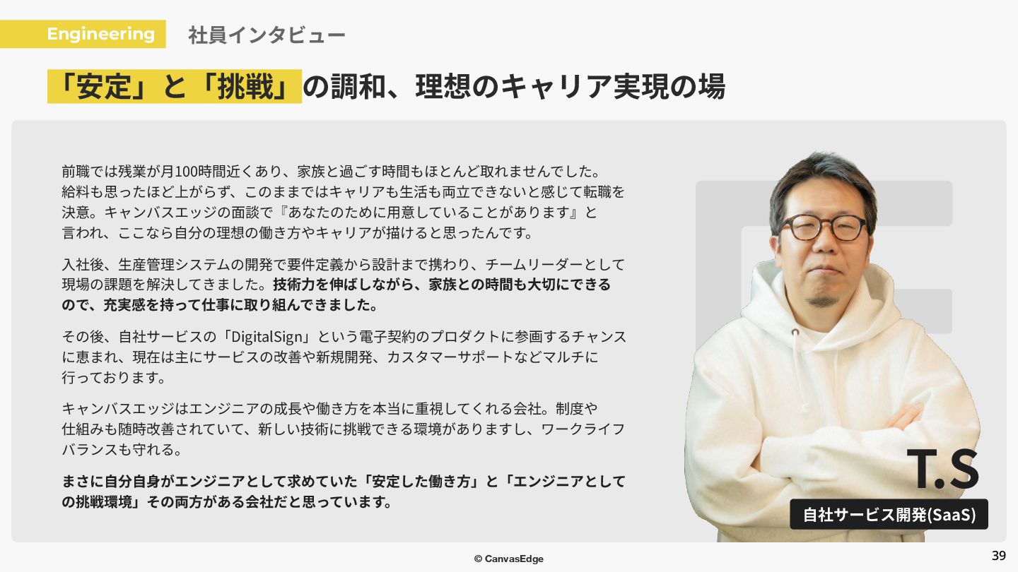 『優秀なエンジニアにもっとも支持される環境づくり』をセンターピンに据えております。