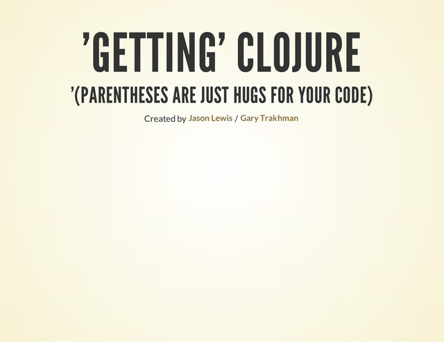 u r e ( d o - a - b u n c h - o f - s t u f f ) ) ] ; ; i n a n o t h e r t h r e a d ( d o - s t u f f - i n - t h i s - t h r e a d ) ; ; r e t u r n t h e v a l u e i n f , b l o c k i n g i f i t ' s n o t f i n i s h e d ( d e r e f f ) ) MORE! Basically, Clojure promotes your ability to do whatever you want, by simplifying things to their bare essence.