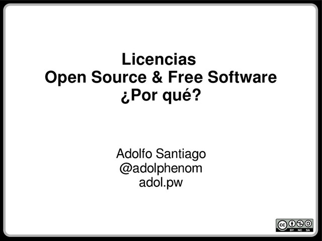 texto con la licencia. • Inclusión en el código fuente de los programas. 2) ALGUNAS: • Incluir un mensaje en el programa sobre la licencia. 3) OTRAS (no todas cumplen el apartado 2): • Incluir los cambios realizados. • Incluir la licencia de los cambios (sea o no la misma).