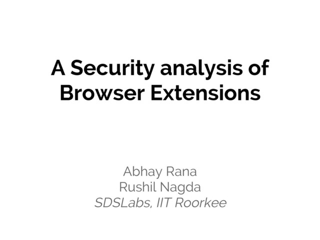 in the browser that could, theoretically, cause a lot of damage. Extension Vulnerabilities: The extension could in itself be vulnerable. • Insecure Coding practices • Developer negligence or incompetence