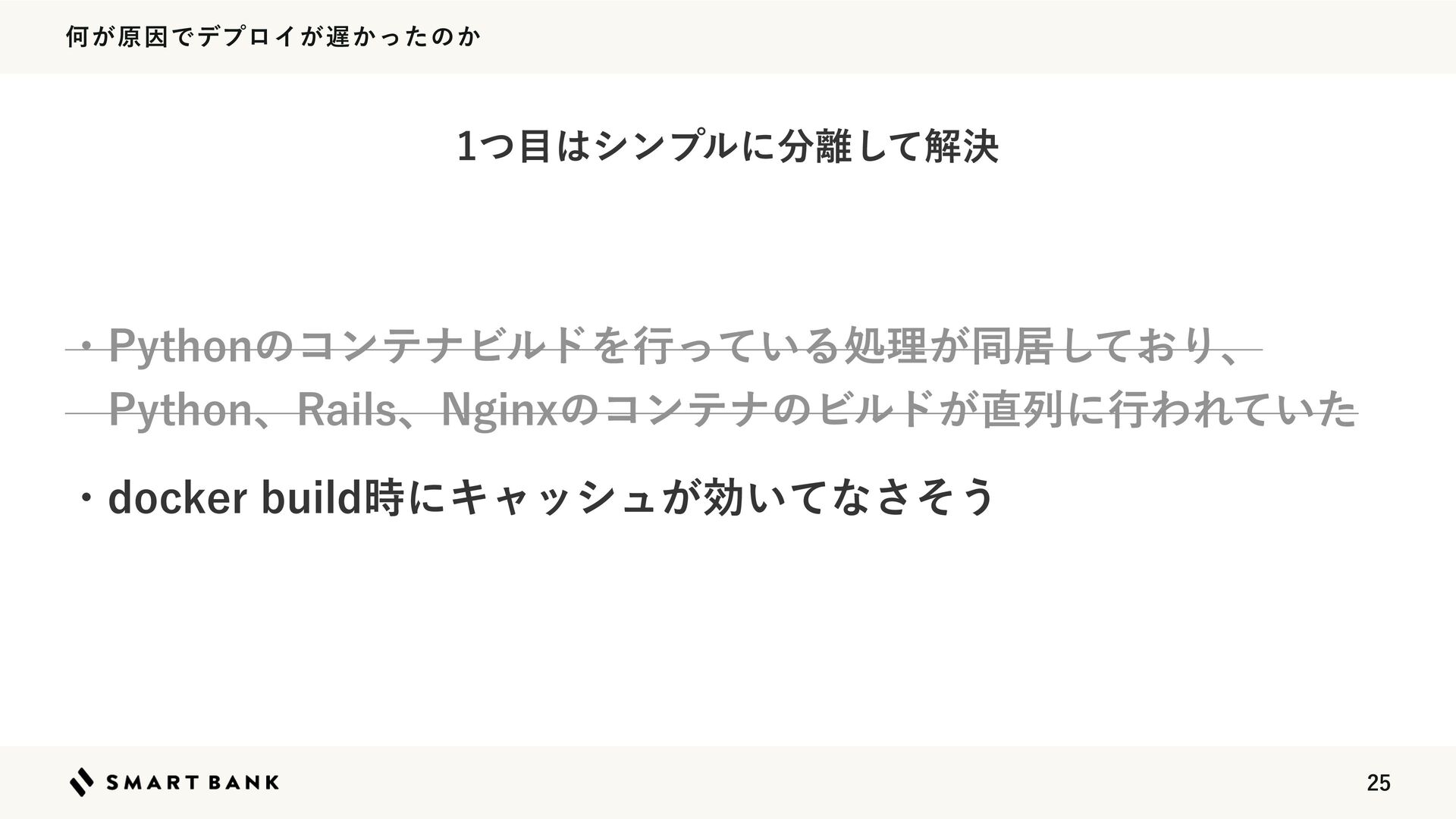 Կ͕ݪҼͰσϓϩΠ͕͔ͬͨͷ͔ ɾ1ZUIPOͷίϯςφϏϧυΛߦ͍ͬͯΔॲཧ͕ಉډ͓ͯ͠Γɺ ɹ1ZUIPOɺ3BJMTɺ/HJOYͷίϯςφͷϏϧυ͕ྻʹߦΘΕ͍ͯͨ ɾEPDLFSCVJME࣌ʹΩϟογϡ͕ޮ͍ͯͳͦ͞͏ ͭγϯϓϧʹͯ͠ղܾ