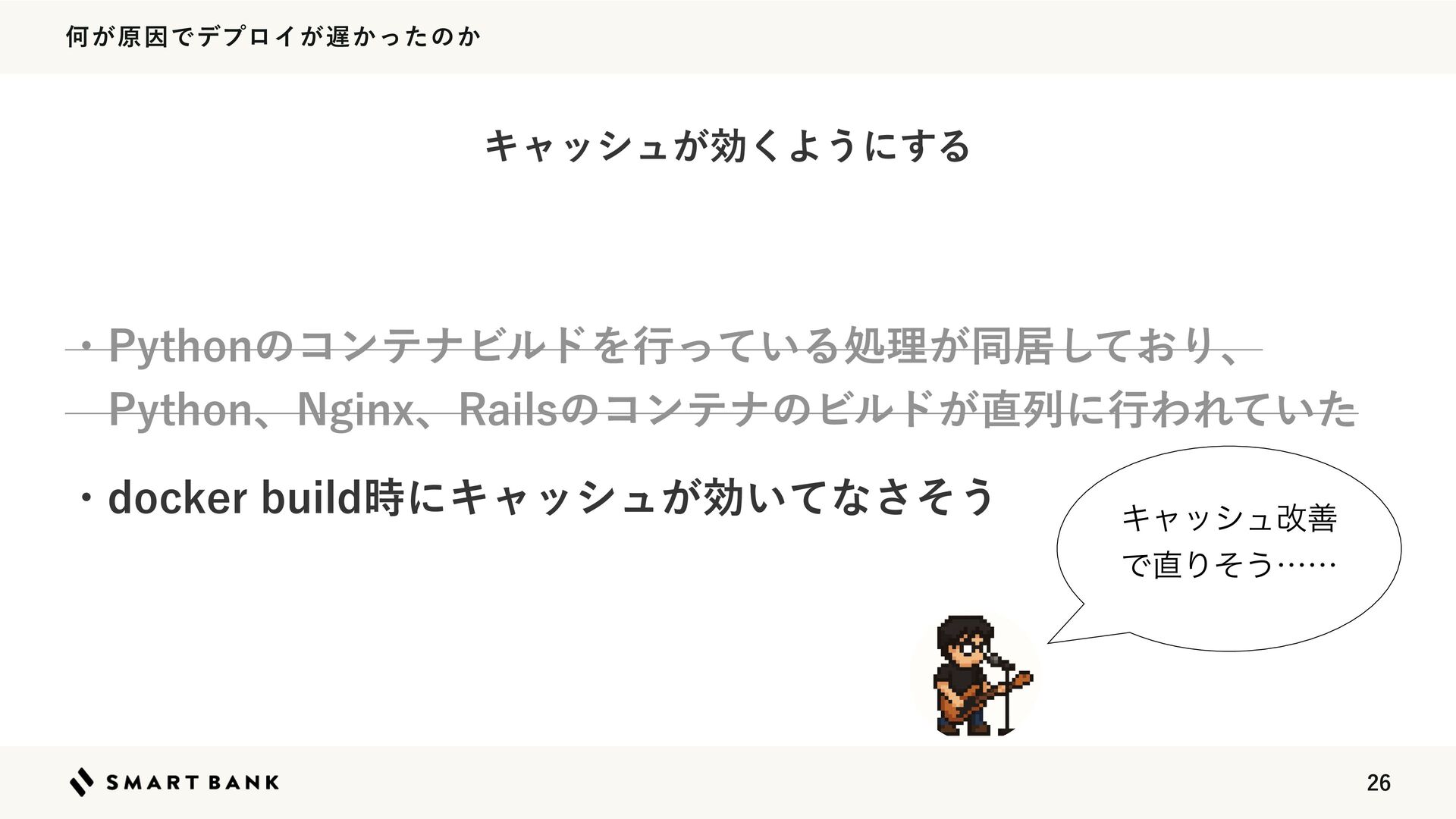 Կ͕ݪҼͰσϓϩΠ͕͔ͬͨͷ͔ ɾ1ZUIPOͷίϯςφϏϧυΛߦ͍ͬͯΔॲཧ͕ಉډ͓ͯ͠Γɺ ɹ1ZUIPOɺ/HJOYɺ3BJMTͷίϯςφͷϏϧυ͕ྻʹߦΘΕ͍ͯͨ ɾEPDLFSCVJME࣌ʹΩϟογϡ͕ޮ͍ͯͳͦ͞͏ Ωϟογϡ͕ޮ͘Α͏ʹ͢Δ Ωϟογϡվળ ͰΓͦ͏ʜʜ