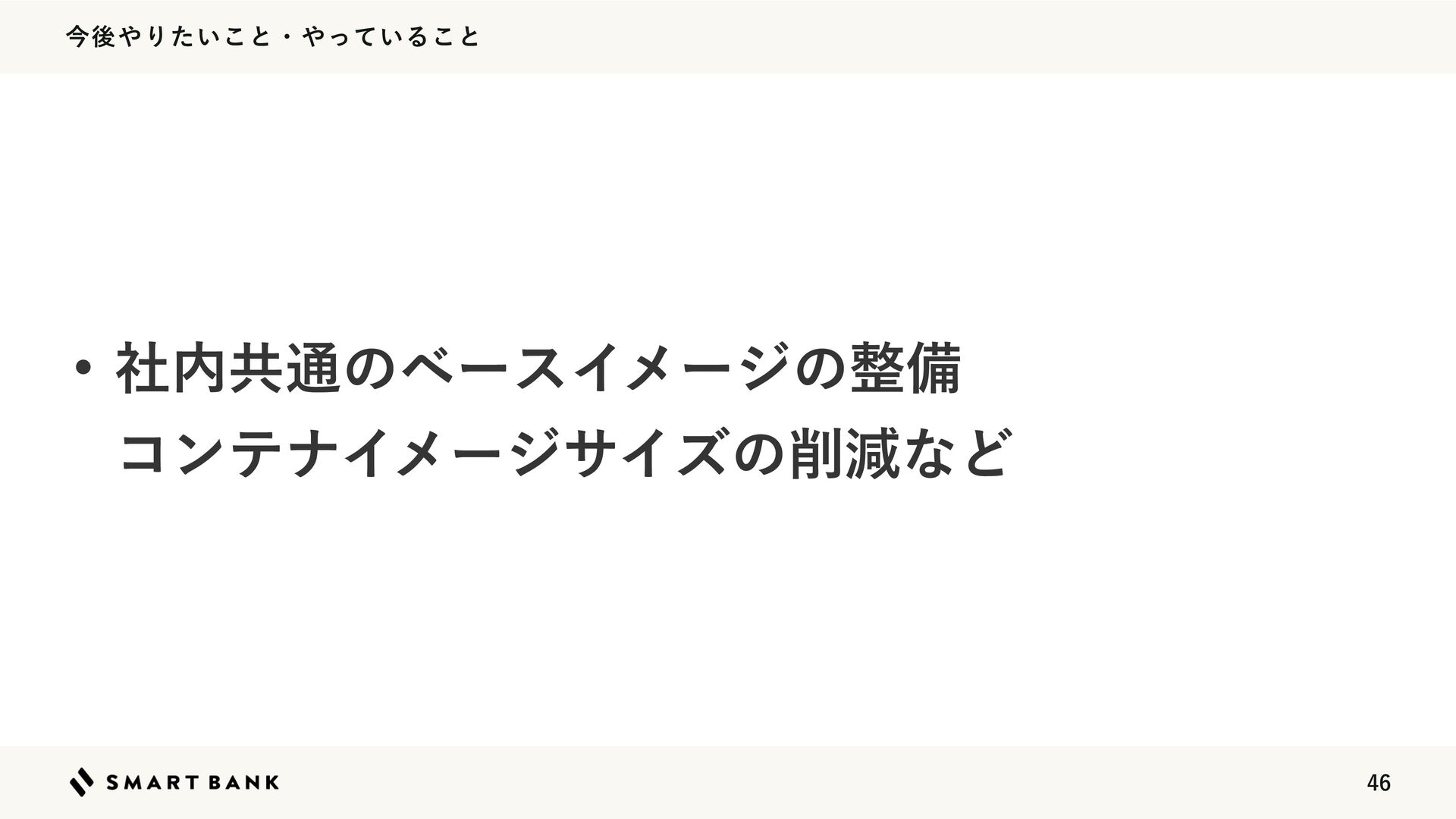 ࠓޙΓ͍ͨ͜ͱɾ͍ͬͯΔ͜ͱ w ࣾڞ௨ͷϕʔεΠϝʔδͷඋ ίϯςφΠϝʔδαΠζͷݮͳͲ
