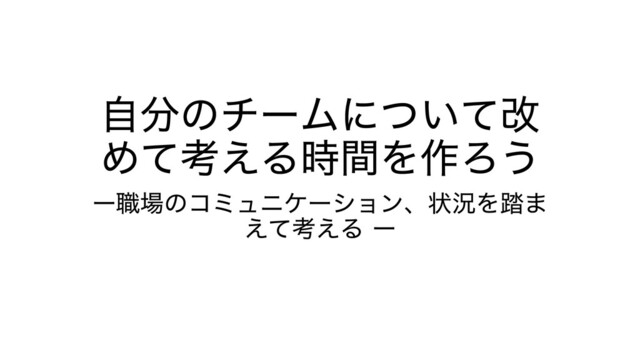 自分のチームについて改めて考える時間を作ろう 職場のコミュニケーション、状況を踏まえて考える。
