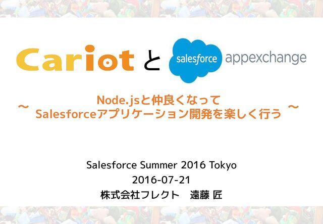 と Salesforce Summer 2016 Tokyo 2016-07-21 株式会社フレクト 遠藤 匠 Node.jsと仲良くなって Salesforceアプリケーション開発を楽しく行う