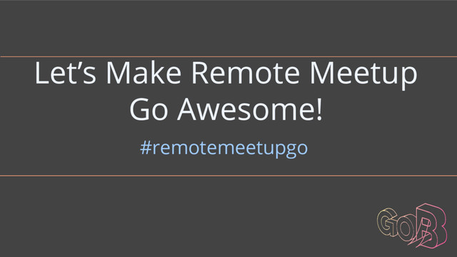 In this short talk, I will show you how the Go Remote Meetup works, the talks that we have hosted in the past, and some viewership stats. With your help, we can schedule even more talks and build a worldwide community of remote meetups that anyone can attend.