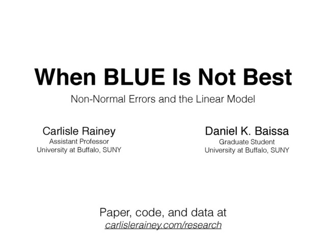 Model Carlisle Rainey Assistant Professor University at Buffalo, SUNY Daniel K. Baissa Graduate Student University at Buffalo, SUNY Paper, code, and data at carlislerainey.com/research