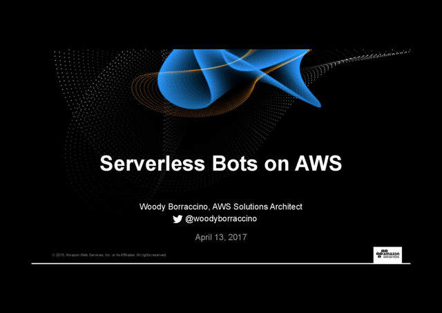 Natural Language Understanding (NLU) Same technology that powers Alexa Cognito CloudTrail CloudWatch AWS Services Action AWS Lambda Authentication & Visibility Speech API Language API Fulfillment End-Users Developers Console SDK Intents, Slots, Prompts, Utterances Input: Speech or Text Multi-Platform Clients: Mobile, IoT, Web, Chat API Output: Speech (via Polly TTS) or Text