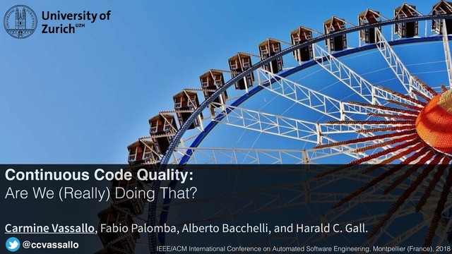Our study on Continuous Code Quality in Continuous Integration presented at the IEEE/ACM International Conference on Automated Software Engineering (ASE '18) in Montpellier, France. Preprint of the corresponding paper available at http://doi.org/10.5281/zenodo.1341036
