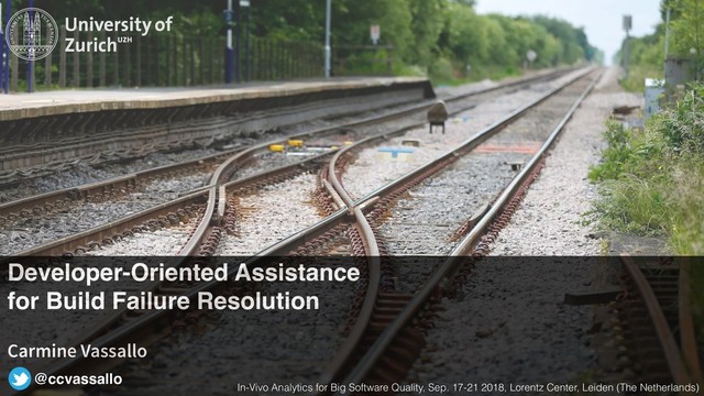 Slides on Developer-Oriented Assistance for Build Failure Resolution discussed during In-Vivo Analytics for Big Software Quality at Lorentz Center in Leiden (The Netherlands).