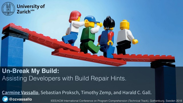 Our study on developer-oriented assistance for build failures presented at the IEEE/ACM International Conference on Program Comprehension (Technical Track, ICPC '18) in Gothenburg, Sweden. Preprint of the corresponding paper available at http://www.ifi.uzh.ch/seal/people/vassallo/VassalloICPC18.pdf