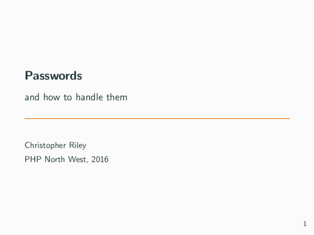During this talk I will go over some of the common mistakes people make surrounding password policies and elaborate on the golden rules for storing them securely.