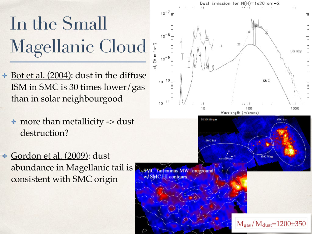 al. (2007): map of H2 from dust in the SMC from Spitzer data ✤ Rubio et al. 2004, Bot et al. 2007, Bot et al. 2010: Millimeter dust emission studies in the south-west regions of SMC ✤ in all SMC clouds: