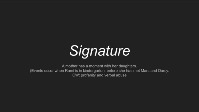 occur when Rami is in kindergarten, before she has met Mars and Darcy. CW: profanity and verbal abuse