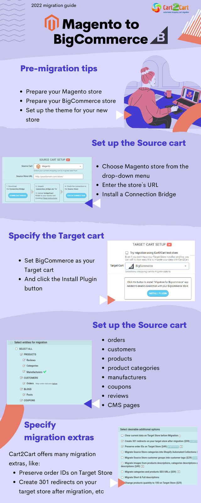 With Cart2Cart, it’s a quick and hassle-free process to migrate Magento to BigCommerce. Cart2Cart automates the process while safeguarding your order IDs and SEO during the migration. Here you can start your own migration: https://www.shopping-cart-migration.com/magento-to-bigcommerce
