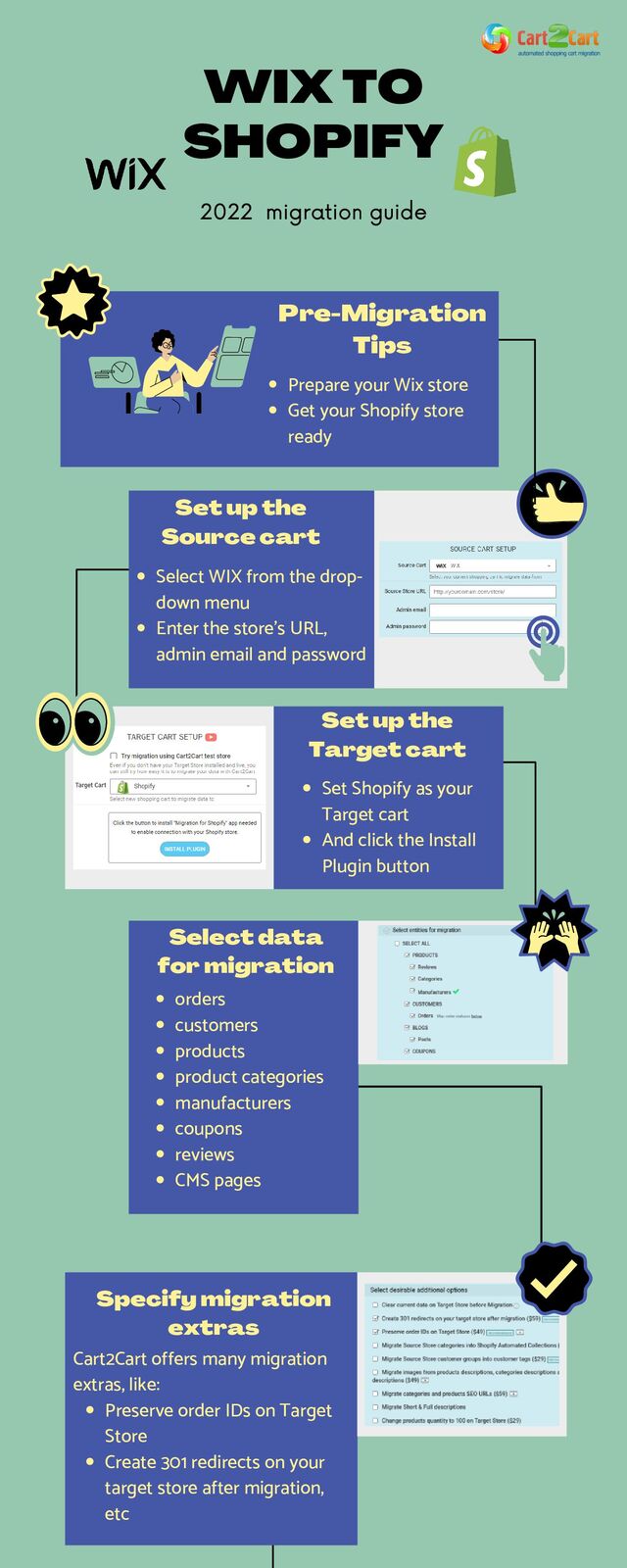 With Cart2Cart, it’s a quick and hassle-free process to migrate WIX to Shopify. Cart2Cart automates the process while safeguarding your order IDs and SEO during the migration. Here you can start your own migration: https://www.shopping-cart-migration.com/wix-to-shopify