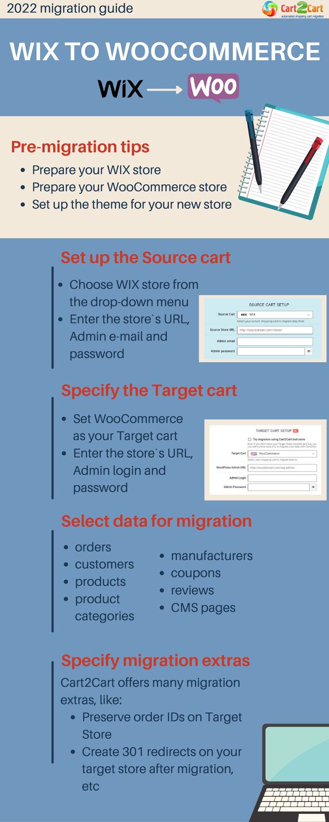 With Cart2Cart, it’s a quick and hassle-free process to migrate WIX to WooCommerce. Cart2Cart automates the process while safeguarding your order IDs and SEO during the migration. Here you can start your own migration: https://www.shopping-cart-migration.com/wix-to-woocommerce-migration