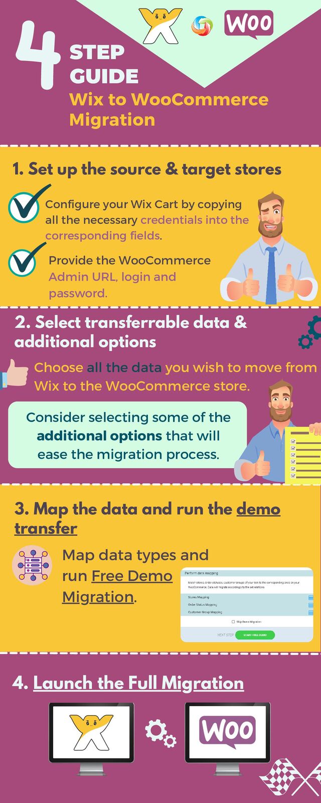 eCommerce migration from Wix to WooCommerce is a perfect way to move all the necessary data (e.g., products, customers, orders, and more) from an old platform to the new and more advanced one. Therefore, there's no need to build a WooCommerce store from scratch. Just use the Cart2Cart tool to do it automatically without any tech skills needed:
