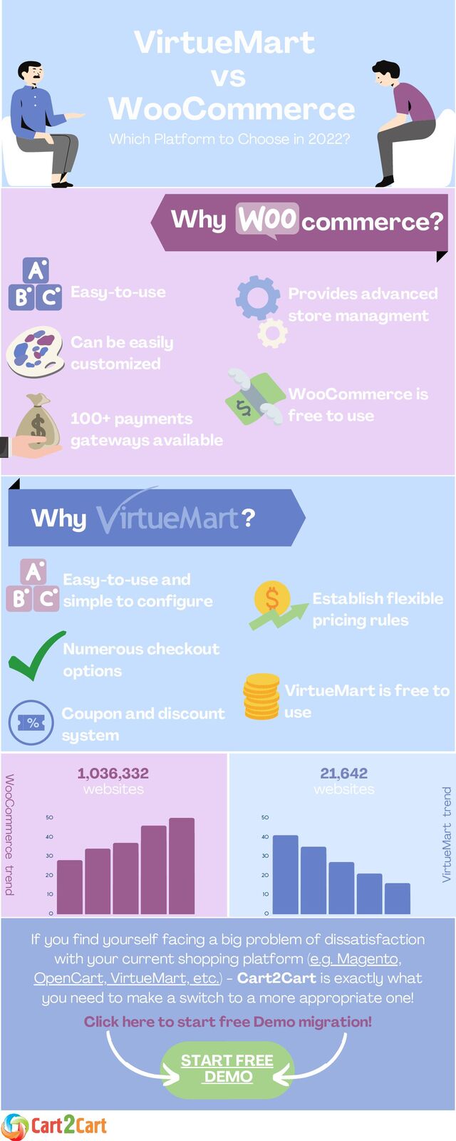 If you're looking for the best fit among VirtueMart vs WooCommerce, you're in the right place. After all, they are both popular shopping platforms and once chosen properly, can benefit any eCommerce business. https://www.shopping-cart-migration.com/supported-carts/4418-woocommerce