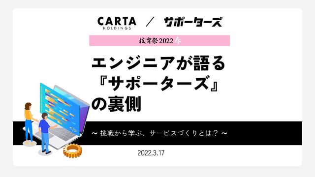外注+社内体制に移行 2016年 後半 エンジニア さらに2名増 リニューアルに挑戦するも 失敗。3ヶ月でできると思っ ていたあの頃... この頃ようやく手元の開発 環境ができる 2017年 4月 CoLabリリース 勉強会いっぱいやりました (2020年サービス終了) 2018年 春 奮闘期 DBが業務ドメインとかけ 離れてきている状態の中、 かろうじて存命するため管 理画面を別で作り新機能を 作っていた フルリプレイスを決める 21卒以降の学生向けサービスを イチから作り直すことに 2019年 1月17日 新サービス始動 21卒以降向けサービス を無事リリース。ちな みに当初企業管理画面 はなかった サポーターズ創業から、フルリプレイスまで