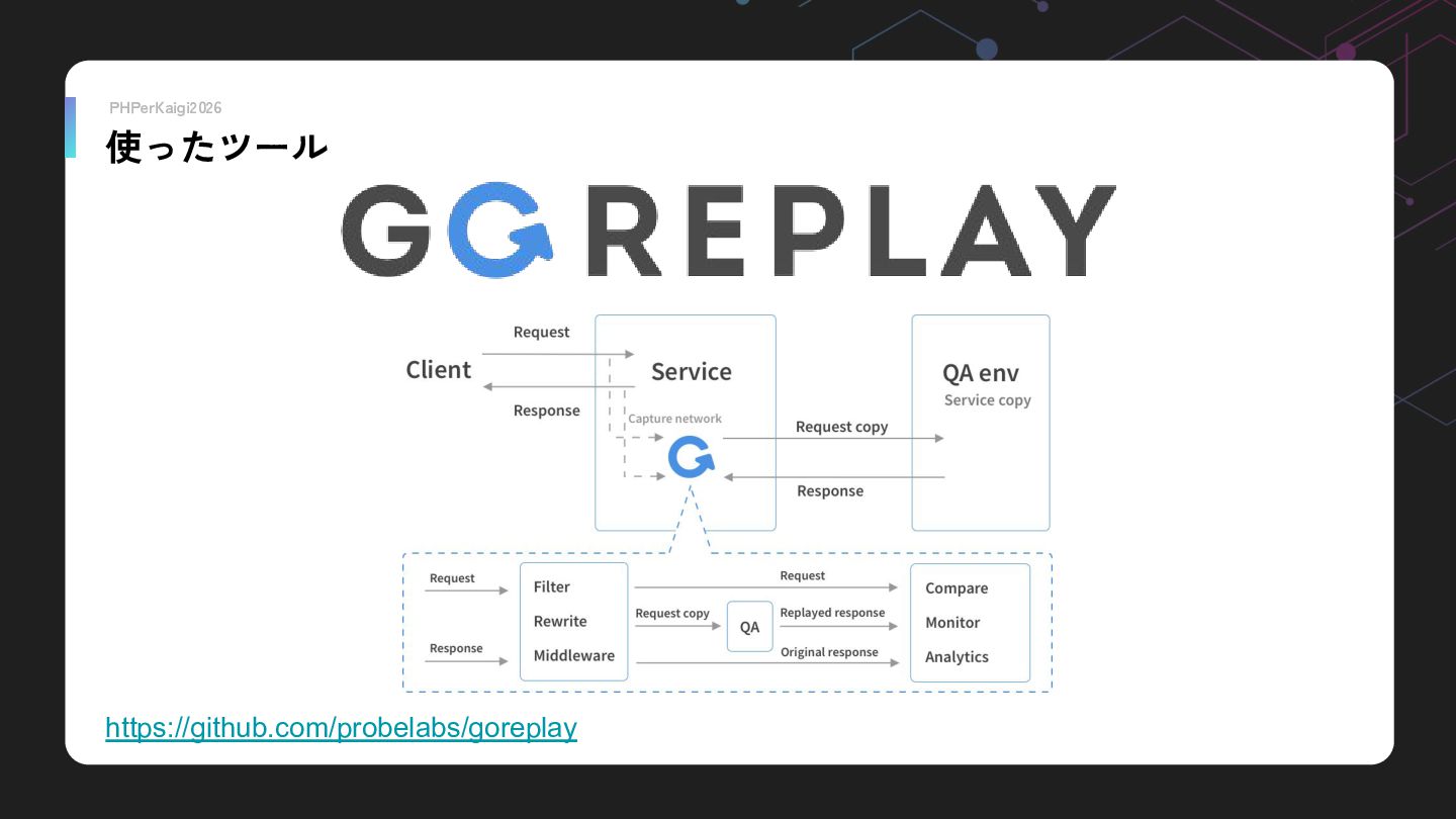 PHPerKaigi2026 使ったツール https://github.com/probelabs/goreplay