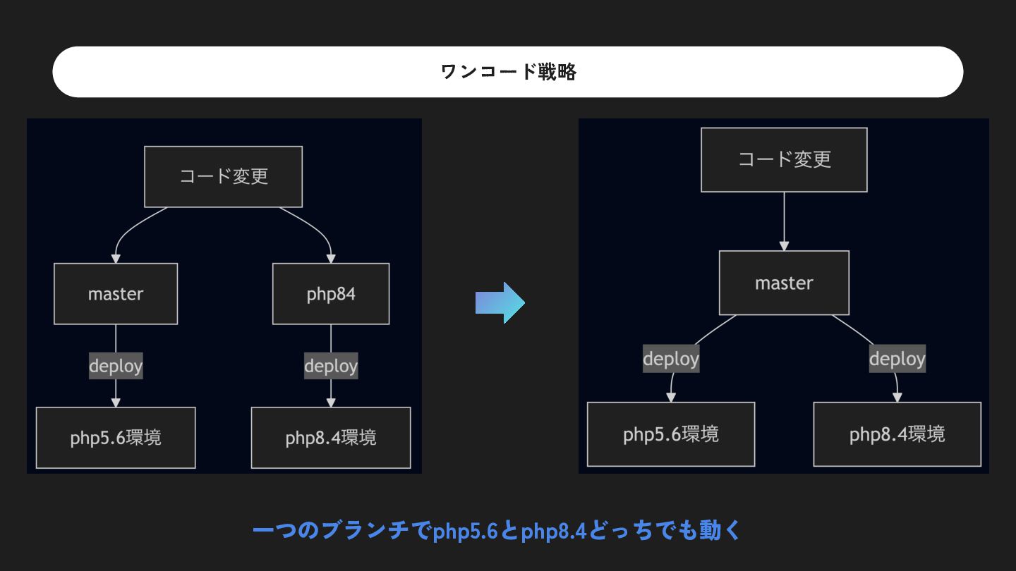 ワンコード戦略 一つのブランチでphp5.6とphp8.4どっちでも動く