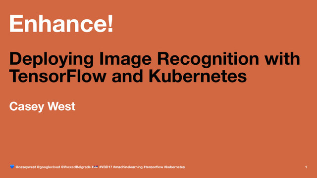 beverage enthusiast, rock climber, cyclist, acro yoga person… —An Architecture Advocate at Google. I am not… —A data scientist. —An expert in machine learning. ! @caseywest @googlecloud @VoxxedBelgrade #" #VBD17 #machinelearning #tensorflow #kubernetes 2