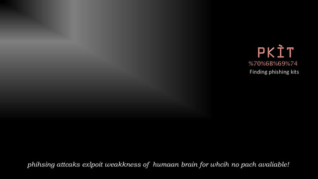 own research and purely for educational purposes, should not be attribute to my employer's past, present or future Phishing kits collected during research were never used in any way other then finding indicators which helps in threat hunting