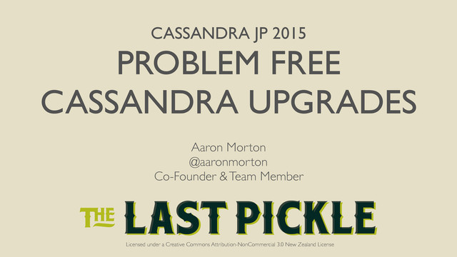 CASSANDRA JP 2015 PROBLEM FREE CASSANDRA UPGRADES Licensed under a Creative Commons Attribution-NonCommercial 3.0 New Zealand License Aaron Morton @aaronmorton Co-Founder & Team Member