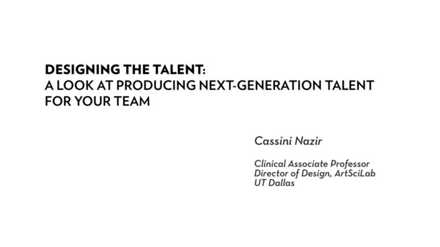 Designing the Talent - A Look at Producing Next Generation Talent - XD 2017