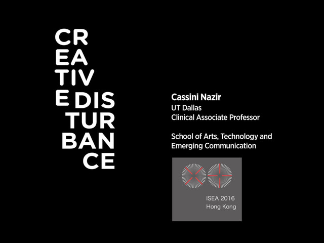 Panel presentation at International Symposium of the Electronic Arts (ISEA) on emerging platforms for artist interactions. This presentation focused on Creative Disturbance, a podcast platform created in our lab that serves the arts, science, and technology communities. Presented with Andrew Demirjian, xtine Burrough, Heidi Boisvert, and Ellen Pearlman.