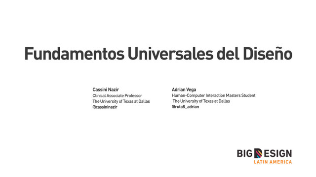 A talk introducing a selection of design principles found in William Lidwell's Fundamentals of Design book to the User Experience Professionals Association (UXPA) in Quito, Ecuador. Part of a series of presentations given in cooperation with Big Design Latin America.