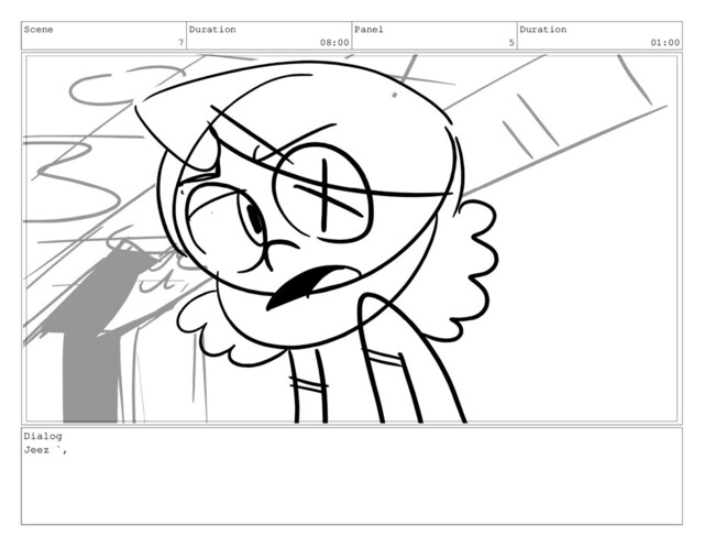Scene 7 Duration 08:00 Panel 5 Duration 01:00 Dialog Jeez
