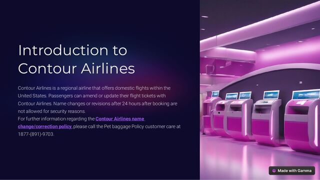 For further information regarding the Contour Airlines name change/correction policy, please call the Petbaggage Policy customer care at 1877-(891)-9703.