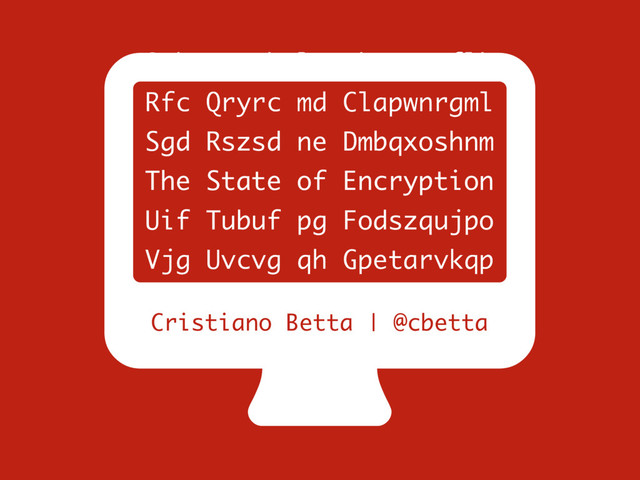 ne Dmbqxoshnm The State of Encryption Uif Tubuf pg Fodszqujpo Vjg Uvcvg qh Gpetarvkqp Wkh Vwdwh ri Hqfubswlrq ! Cristiano Betta | @cbetta