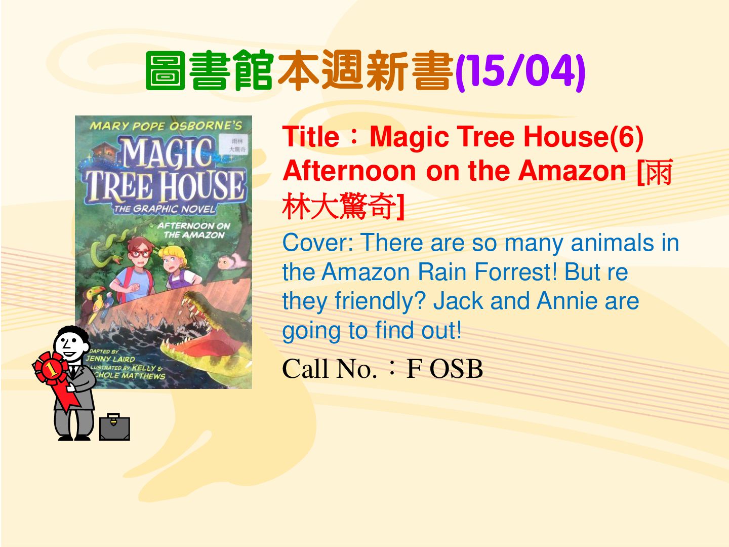 圖書館本週新書(15/04) Title:Magic Tree House(6) Afternoon on the Amazon [雨 林大驚奇]