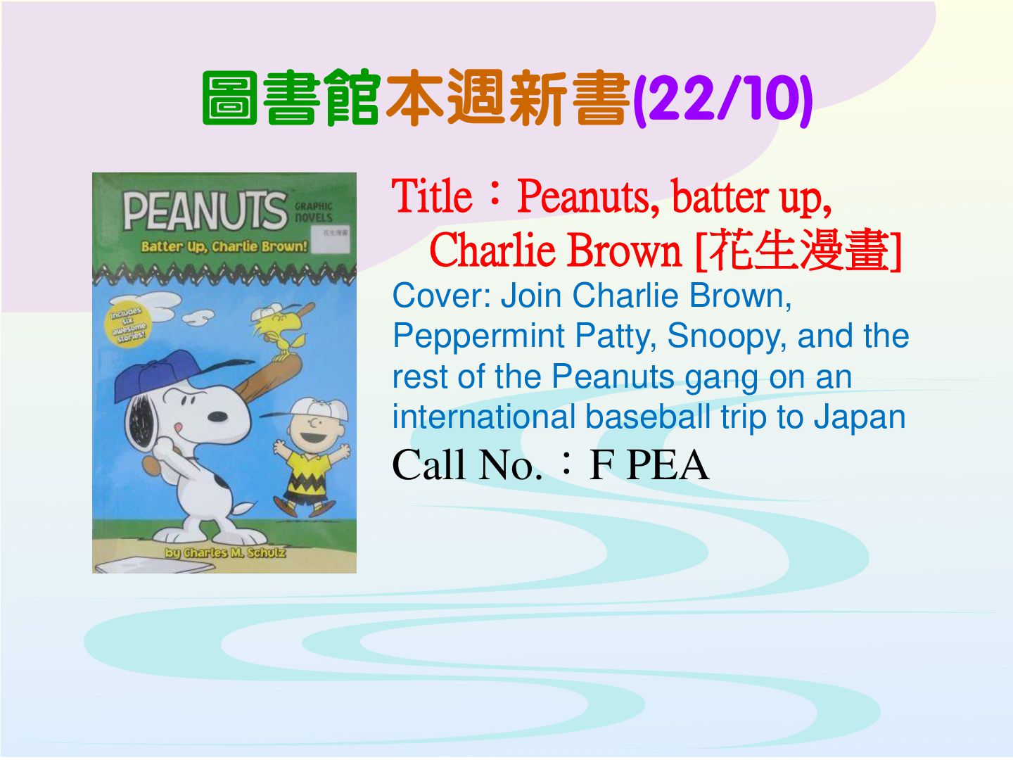 圖書館本週新書(22/10) Title:Peanuts, batter up, Charlie Brown [花生漫畫] Cover: Join Charlie
