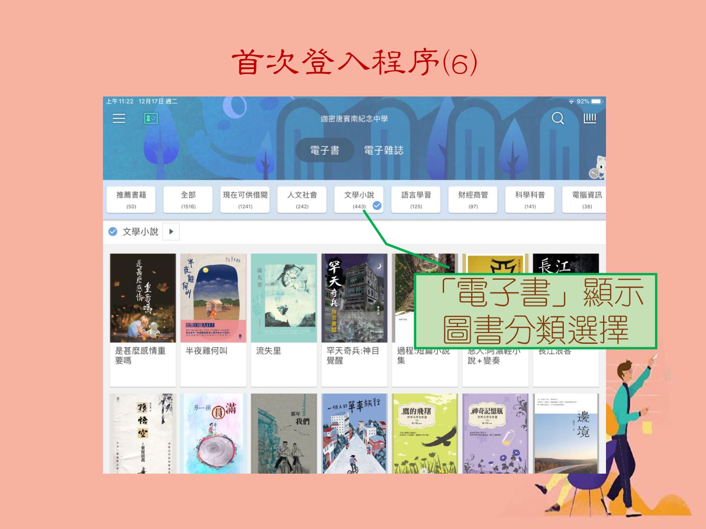 首次登入程序(6) 「電子書」顯示 圖書分類選擇