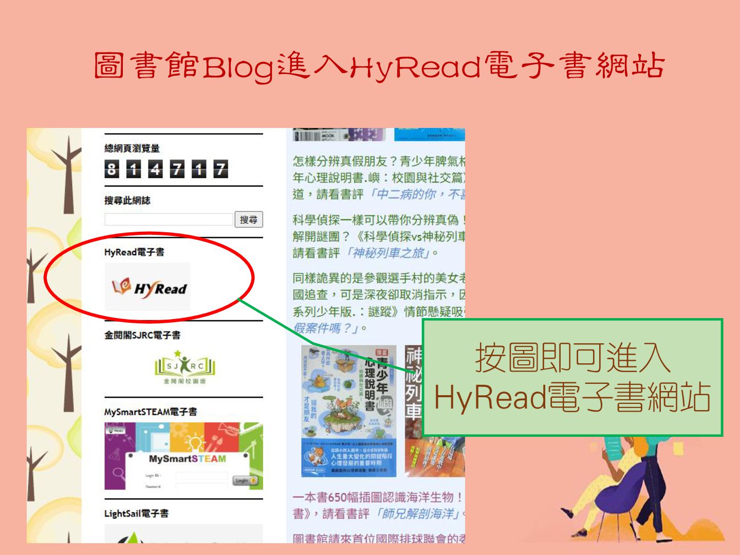 圖書館Blog進入HyRead電子書網站 按圖即可進入 HyRead電子書網站