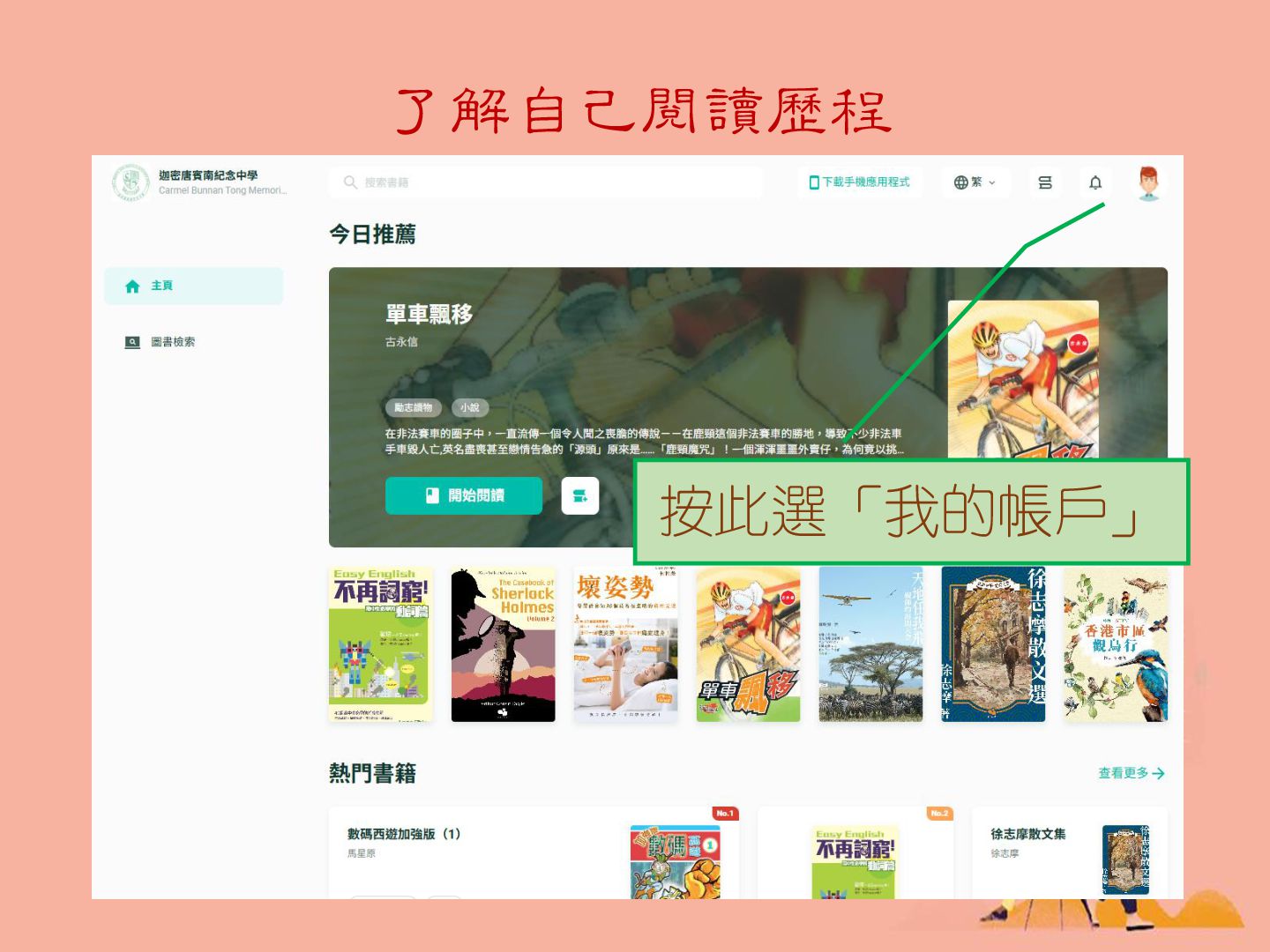 了解自己閱讀歷程 按此選「我的帳戶」