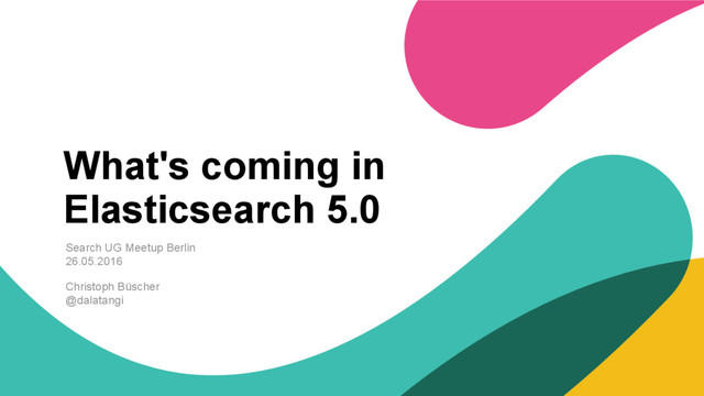 Talking at the Berlin Search UG on 26.05.2016 about some new features in the coming 5.0 release of Elasticsearch