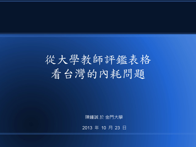 從大學教師評鑑表格 看台灣的內耗問題 陳鍾誠 於 金門大學 2013 年 10 月 23