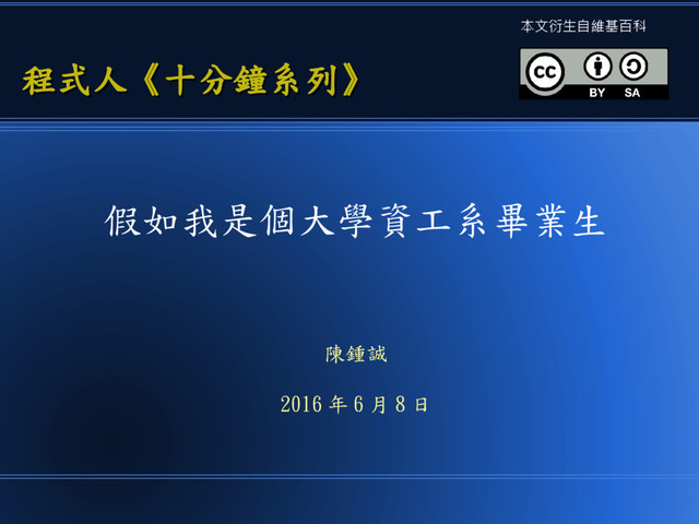 假如我是個大學資工系畢業生 陳鍾誠 2016 年 6 月 8 日 程式人《十分鐘系列》 程式人《十分鐘系列》