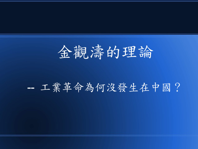 金觀濤的理論 -- 工業革命為何沒發生在中國?