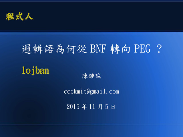 邏輯語為何從 BNF 轉向 PEG ? 陳鍾誠