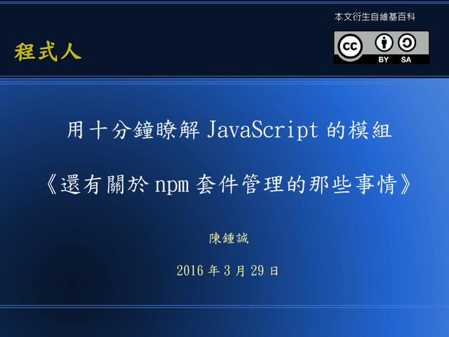 用十分鐘瞭解JavaScript的模組 -- 《還有關於npm套件管理的那些事情》